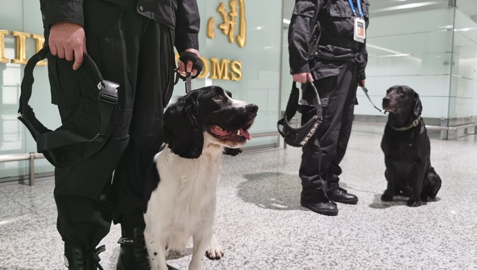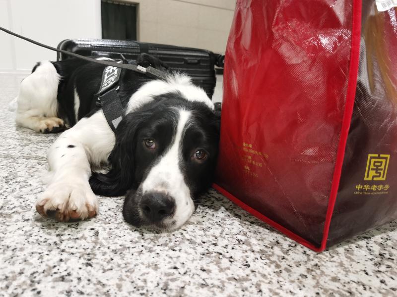 赶在春运正式开始前,这条名叫尼克的励志狗正式上岗虹桥机场旅检岗位。