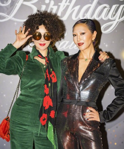 据了解,这是为庆祝刘嘉玲弟媳妇Laura的50岁生日,在上海举办的生日派对,派对主题是70年代,所以大家都是怀旧风格。