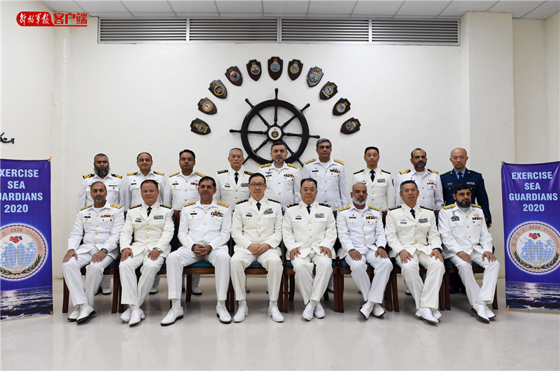 1月14日上午,“海洋卫士-2020”中巴海上联合演习在巴基斯坦卡拉奇闭幕。图为闭幕式结束后,联演双方指挥员合影。记者穆瑞林 摄
