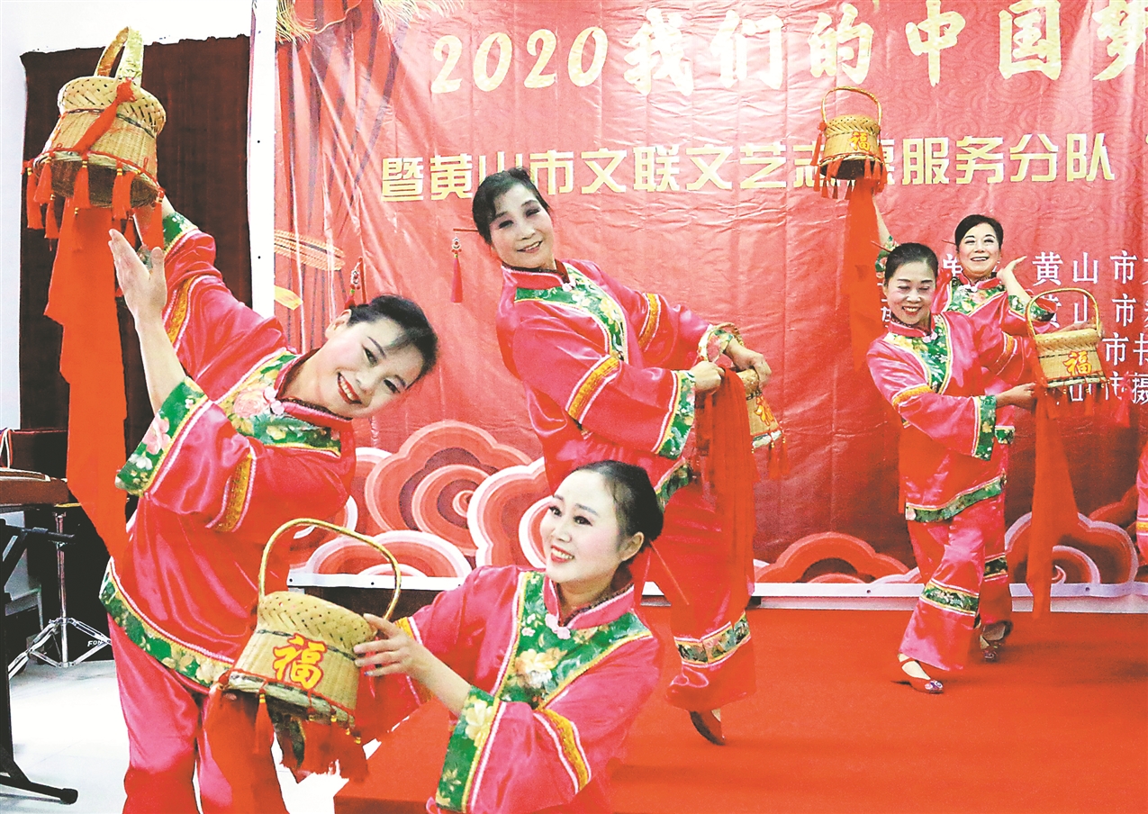 长桌排开,红纸铺就,笔墨挥洒,书法家们各显身手,一副副寓意吉祥的春联、福字送到乡亲手中。街坊邻居出节目,社区礼堂里唱响百姓心声,“草根”艺人上舞台,锣鼓声中喜说丰年,一台台乡村或社区迎春晚会,丰富着基层文化生活,提升了群众的幸福感与获得感。展非遗、演节目、亮民俗,一支支“红色文艺轻骑兵”进乡村、进社区、进广场,开展形式多样的文化艺术活动,将接地气、冒热气的“文化年货”送进千家万户。连日来,江淮大地处处欢歌笑语,形式多样、内容充实、内涵丰富的文化艺术活动营造出欢乐祥和、喜庆热烈的浓厚节日氛围,将党和政府的声音和关怀传递到百姓心间,激发起决胜全面小康的决心和信心。