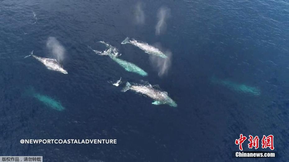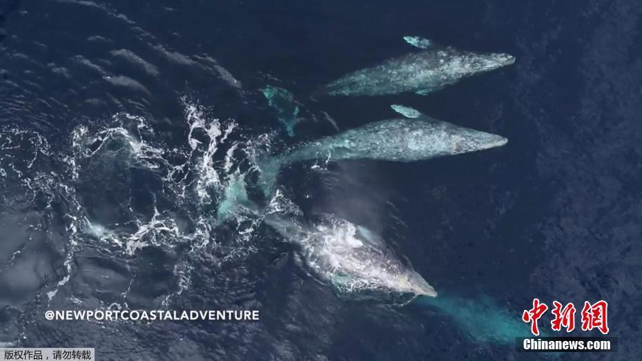 美国加州出现成群灰鲸,不时跃出海面