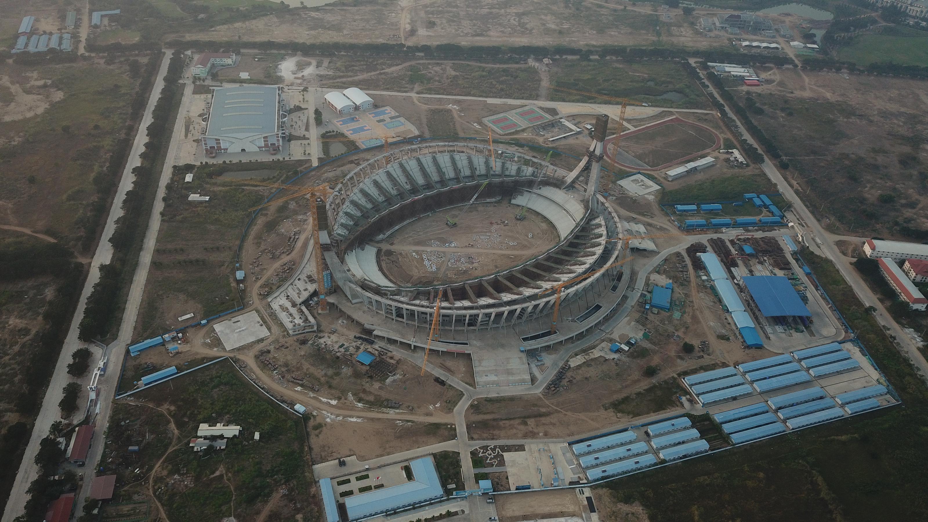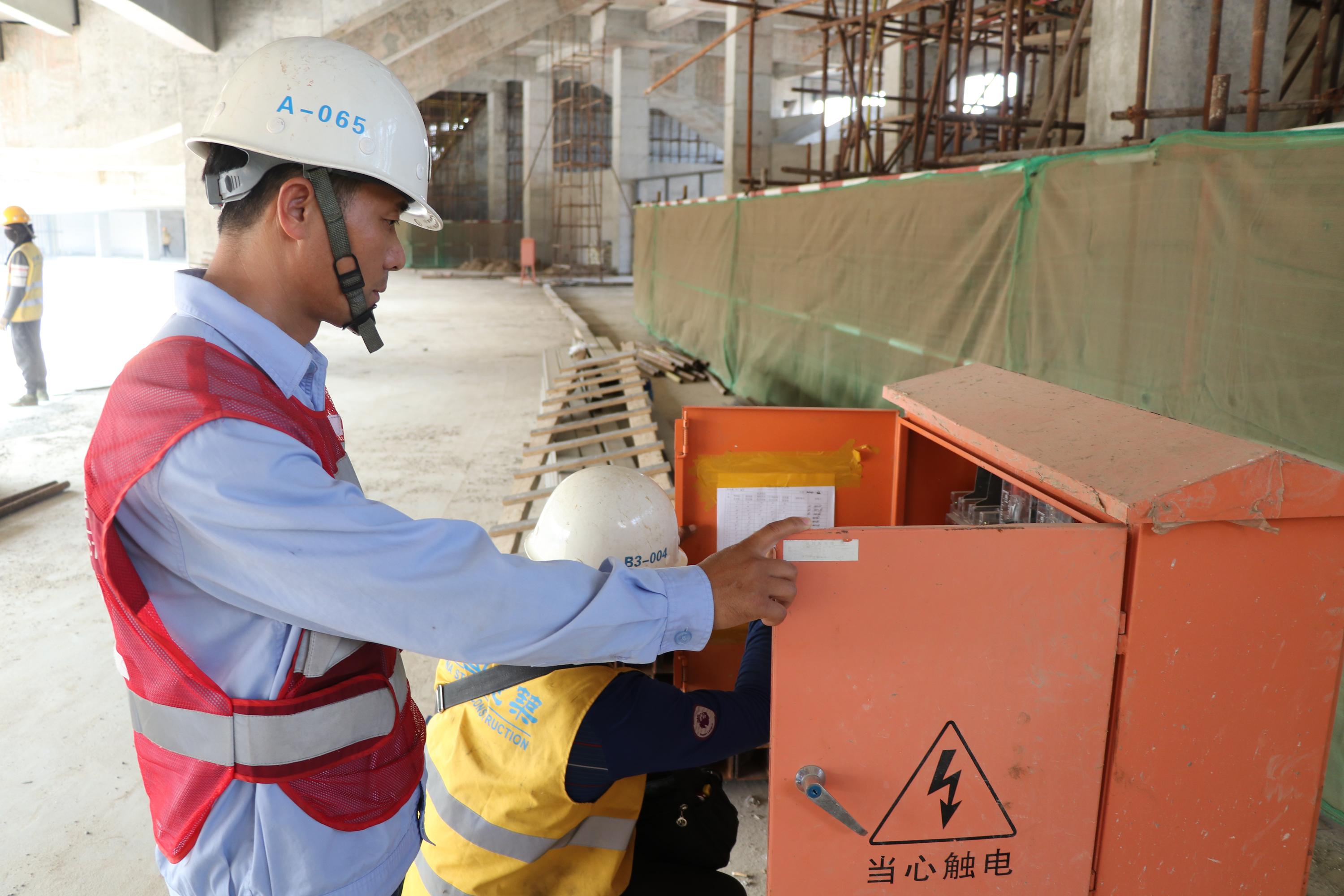 新华社金边1月25日电(记者毛鹏飞 高炳南)农历腊月二十九,湄公河畔的中国援助柬埔寨国家体育场项目工地上依旧是一片繁忙景象。来自陕西的韩继康带着柬埔寨“徒弟”谢桑楠在8万多平方米的体育场开始了又一轮巡检。1月18日,在柬埔寨金边,韩继康(左)和谢桑楠在体育场巡检。(新华社发,高炳南摄)“我们主要负责项目现场水和电方面的施工安全。5台发电机、11个一级柜、70个二级柜分布在体育场各个角落,我们每天都要检查至少两次。”48岁的韩继康和25岁的谢桑楠,都戴着白色头盔、身着安全马甲,一圈检查才进行不久,汗水就把衣服浸透了。中国援柬国家体育场由中国中元国际工程有限公司设计,中国建筑股份有限公司施工,预计2020年底完工,建成后能容纳6万名观众,将成为2023年东南亚运动会主要场馆。春节期间,柬埔寨炎热依旧,像韩继康和谢桑楠这样的中柬员工有三百多人坚持奋战在体育场建设的一线,为确保项目年底完工而努力工作。韩继康说,他每天带着谢桑楠在工地检查维修,手把手教,几个月下来谢桑楠进步非常快,师徒二人不仅获得项目嘉奖,还成了好朋友。1月18日,在柬埔寨金边,无人机拍摄建设中的中国援柬国家体育场项目。(新华社发,高炳南摄)2017年7月开始动工的体育场,如今已呈现出“中柬友谊之船”的造型。项目施工技术组总工程师郭亮亮对记者说,他刚到柬埔寨的时候,体育场还是一片荒地。两年多时间,一座宏伟的体育场拔地而起,就像一艘巨轮等待扬帆远航。郭亮亮说,设计亮点带来诸多施工挑战,“不过这些挑战,在我们集体的努力下,都一一克服了”。项目施工技术组组长王群清对记者说,2020年体育场建筑要完成金属幕墙、玻璃幕墙、精装修和室外景观施工,还要进行田径场地、足球场、看台座椅、场地照明、扩声、体育器材等工程,“今年又是忙碌的一年”。1月24日,在柬埔寨金边,中国援柬国家体育场项目上,中国员工在贴福字。(新华社发,杨慧椋摄)大年三十,项目员工生活区里,白色的宿舍房间、蓝色的屋顶,显得格外干净整洁,门上贴着的福字和春联透出浓浓的年味。项目部专门从国内请来的厨师给员工变着花样准备春节期间的美食,地道的中国菜温暖了“中国胃”。对不少在这里度过了两年多时光的“中建人”来讲,这座体育场就像他们亲手抚养的孩子。今年是郭亮亮在项目上过的第三个春节。两年多前来到这里的时候,他第二个孩子还没满月。“还没见过孩子几次,感觉就长大了,”郭亮亮说,“虽然和家里人聚少离多,心中有遗憾,但看到项目一天天成长,依然很欣慰。”“除夕夜,我们项目留守的同事一起看春晚,跟家里人视频一起过年,”郭亮亮说,“亲人们放心,我们在柬埔寨过年挺好的!祝你们过一个平安健康快乐年!”