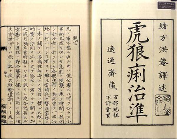 江户时代的日本已经能通过长崎这一对外贸易的窗口接受西方医学知识,并形成了独立于中医之外的“兰医”(兰即荷兰)传统。当时在大坂的兰学塾适塾(大阪大学的前身)有位叫做绪方洪庵(1818—1863)的兰医,他在给弟子的信中说到,八月中旬起大坂霍乱肆虐,他在看过松本良顺送来的蓬佩疗法之后,感觉仍颇有欠缺,于是当机立断,紧急翻译了三部西医著作当中关于霍乱的部分,再加上蓬佩的疗法,于八月下旬出版《虎狼痢(霍乱)治准》。这本小册子中提到的药物是西药奎宁,但根据多次临床治疗经验之后绪方洪庵发现对于日本人体质而言,原书中的奎宁剂量过大,于是做出了调整。而后,对上吐下泻的患者使用鸦片和吗啡,对肌肉痉挛者使用温水擦拭等等。绪方洪庵所记录的已经是当时最新的霍乱治疗法。绪方洪庵将这本小册子印刷了一百册,而后免费发放。