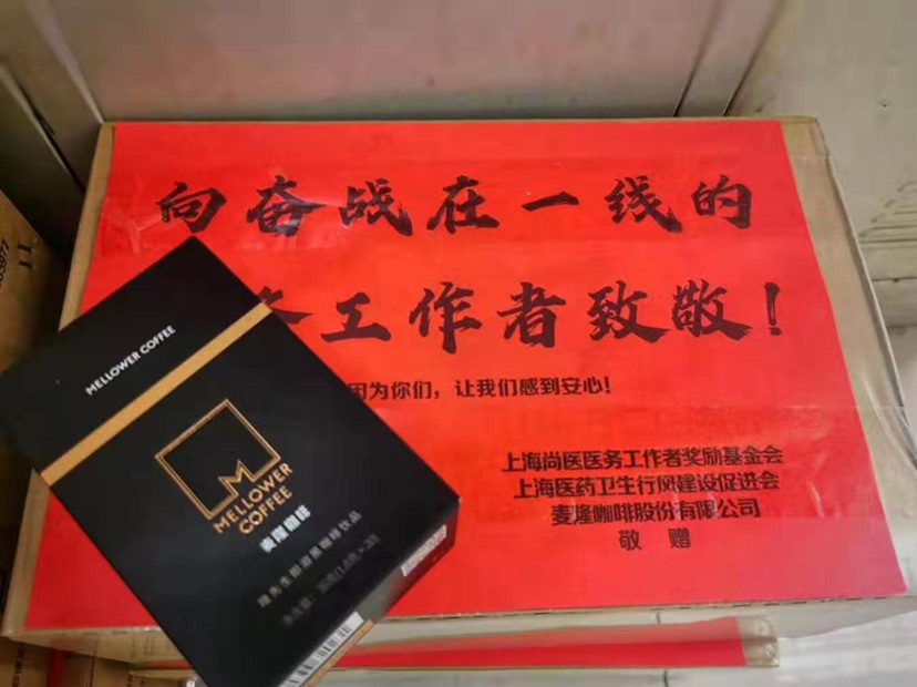2020年2月3日至2月6日,上海尚医医务工作者奖励基金会、上海医药卫生行风建设促进会调配了第三批慰问物资,由麦隆咖啡股份有限公司捐赠的咖啡,送到了抗击新冠肺炎疫情的一线单位市疾病预防控制中心,和市第十人民医院崇明分院、松江区中心医院、市第一人民医院宝山分院、海军第九〇五医院、闵行区中心医院、市第八人民医院、市第六人民医院金山分院、市第四人民医院、市东医院、嘉定区中心医院、奉城医院、朱家角人民医院、普陀区人民医院、浦东医院、静安区中心医院等16个区的42家发热门急诊定点医院的卫生系统工作者手中,并带去来自社会的关怀和慰问。这份温暖的礼物给了一线卫生系统工作者莫大的安慰,纷纷表示,疫情就是命令,时间就是生命,救死扶伤是我们的天职,感谢社会各界的牵挂,“‘暖心咖啡’不但给了我们精神和营养的补充,更鼓舞了我们奋战的勇气和信念,相信我们一定能战胜疫情!”。