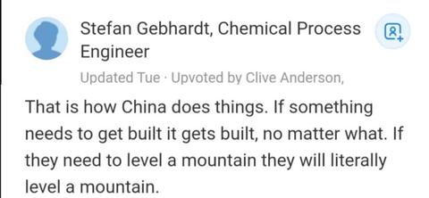 这就是中国的做事风格。如果需要建什么,就撸起袖子干,不论多困难。 如果需要平一座山,那么他们就会给你平一座山。