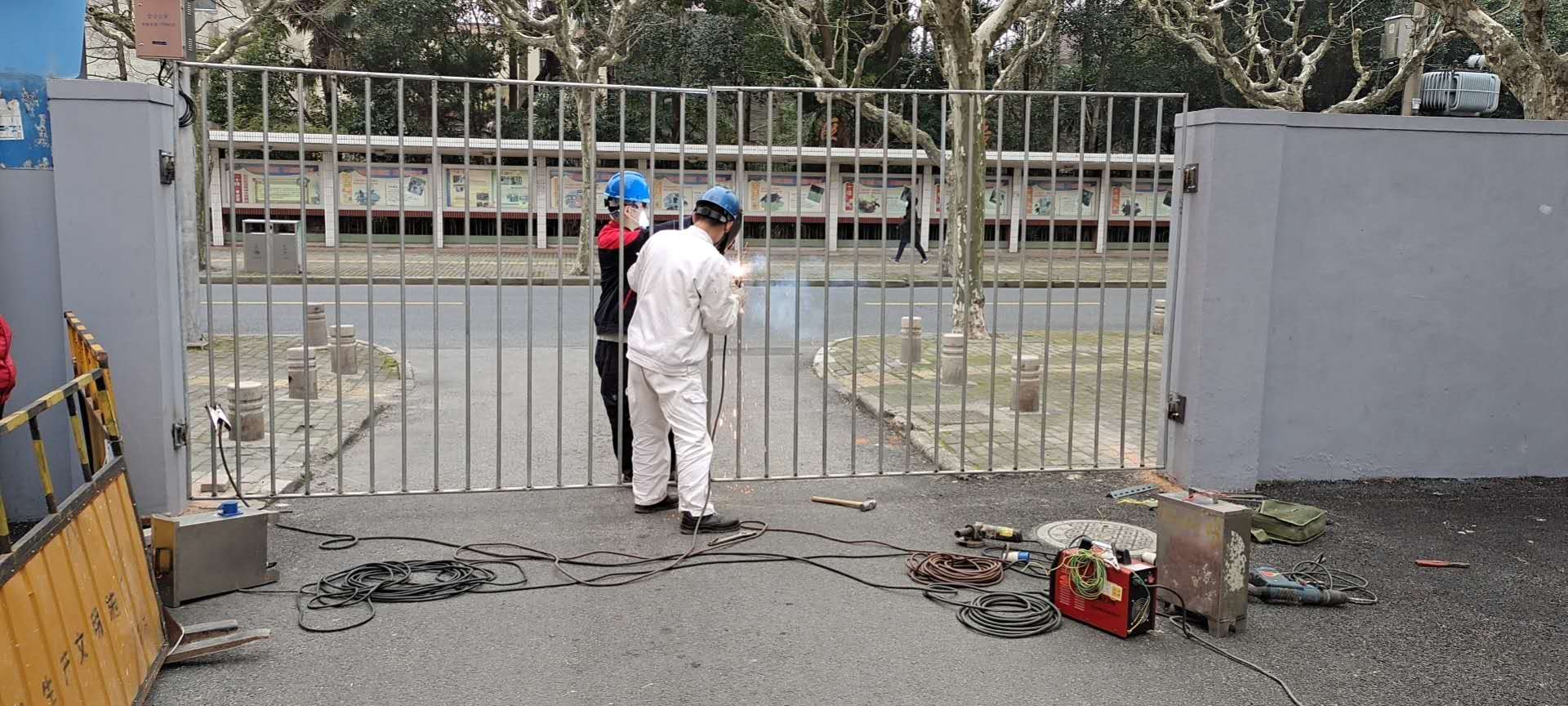 东方网记者黄丽春2月11日报道:搬运、搅拌、砌砖……昨天(10日)下午,在金山区石化街道一村、二村,14名工人正在小区的12个路口砌墙,封闭出入口。而在二村卫一路的门口,由于这里每天要清运垃圾,工人们正在用水管焊接成简易大门,“因为建材店都没开业,我们只能自己组装”。原先这些路口“四通八达”,没有围墙和大门,经过紧急施工,当天下午5点,13个路口已全部封闭。