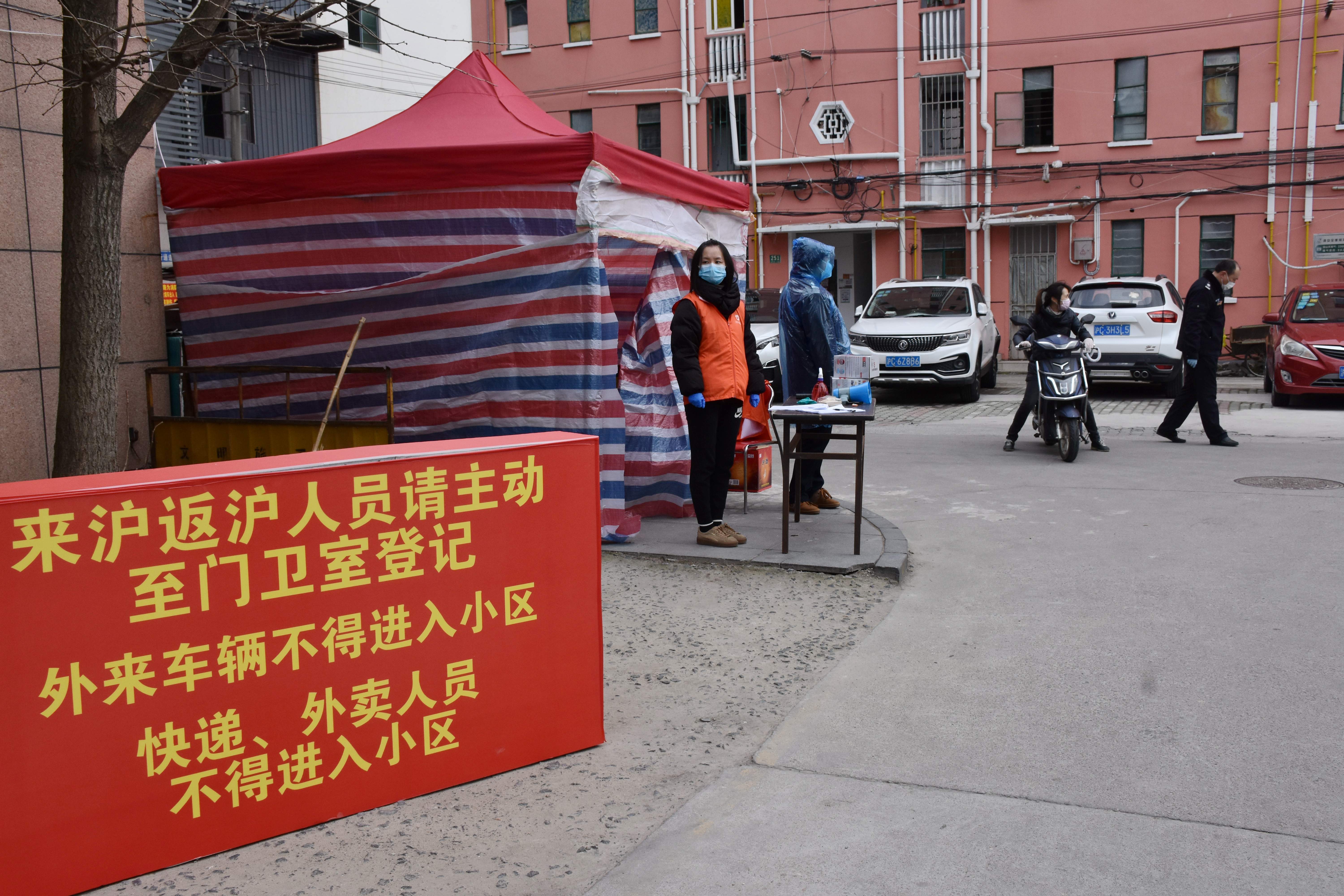 现在的一村出入口,由居委会工作人员、党员志愿者、保安、特保等组成的值守队伍,24小时值班,有条不紊地对进入居民进行体温检测、人员登记等。据悉,当天共有35户返沪人员回到小区,已全部安排居家隔离。