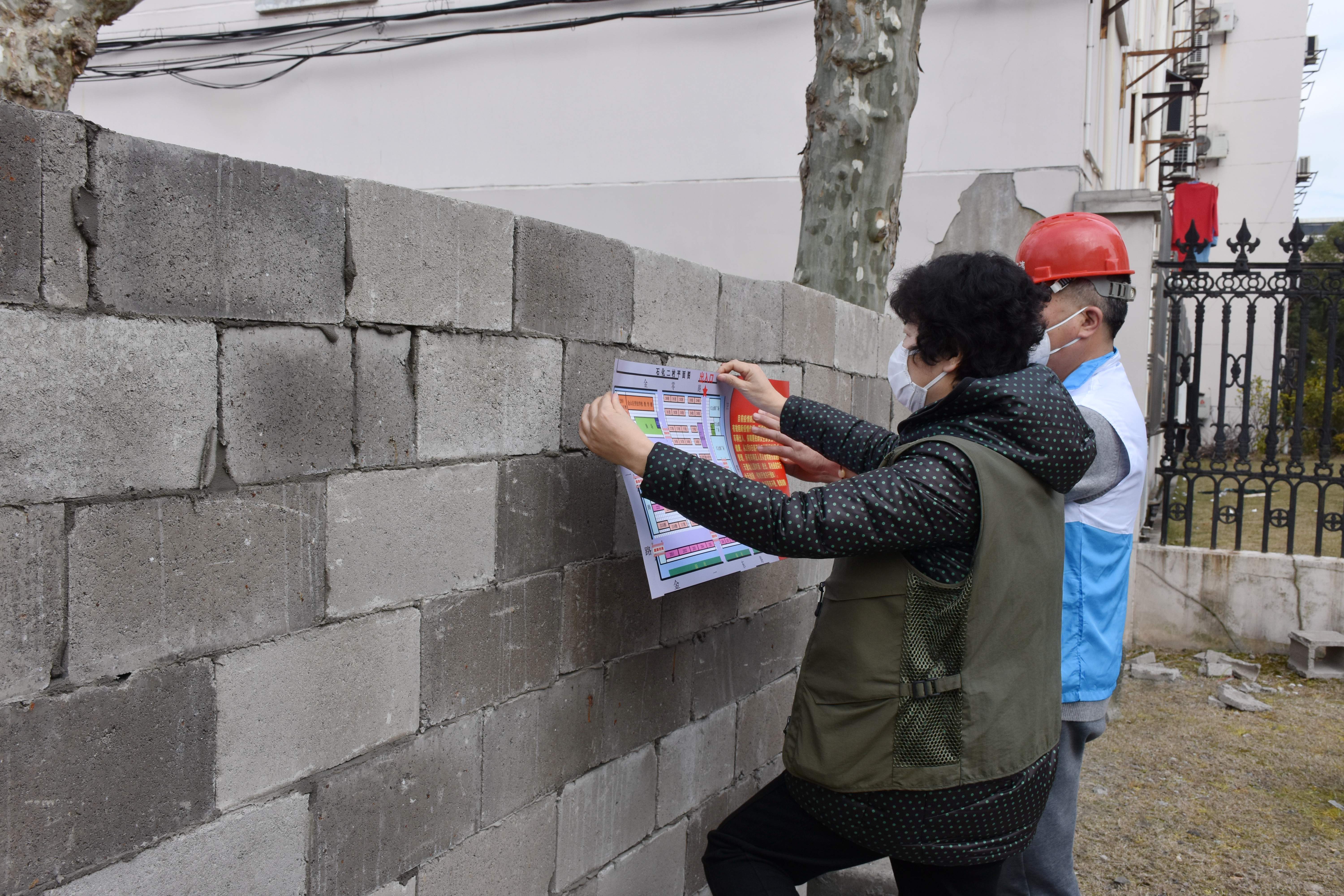 一个个电话联系,金山甚至是浙江、江苏,接到任务后,石化街道房管所所长翁连均以及街道工作人员吴凯与所有砖块供应商逐个对接,由于大部分还在停业,直到深夜才敲定确切的供应商。昨天凌晨,当工作人员到达仓库后,他们被眼前的防盗锁难住了。“我还在外地,现在赶不回来,你们砸吧,回头帮我买把新锁锁上。”经供应商同意,工作人员砸开门,运了满满四车。此外,石化街道还用吊车紧急调配了1个门卫室,拼装了1个简易棚亭供值班人员坚守。
