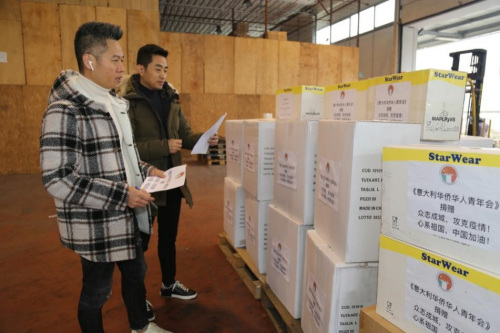 图为意大利华侨华人青年会清点防疫物资。(《欧洲时报》/张锐 摄)
