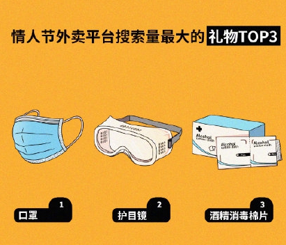 口罩成为情人节礼物榜第一名 来源:美团大数据