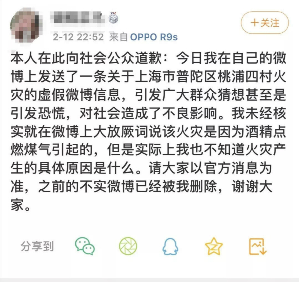 事后,卢某某承认其言论为虚构事实,并随后再次发表微博文章承认其虚构火灾起火原因造谣的事实,并对看到谣言的网友表示歉意。 根据《中华人民共和国治安管理处罚法》第二十五条第一项之规定,其因散布谣言扰乱公共秩序被公安机关处以二百元罚款。