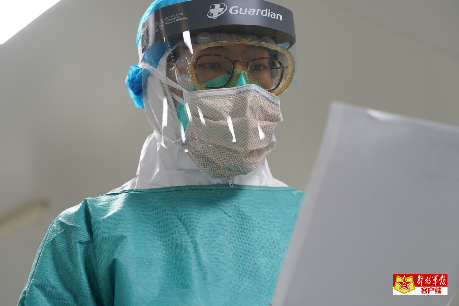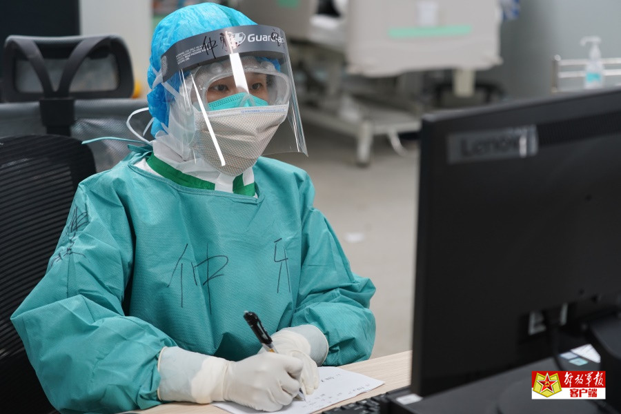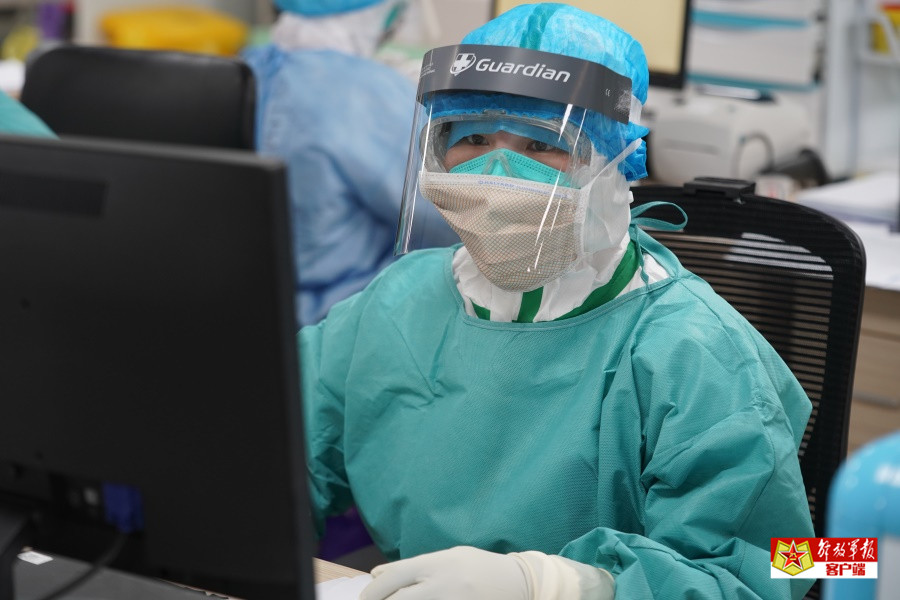 重症医学一科 陈赢护士正在整理患者资料