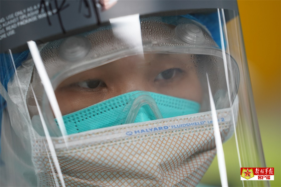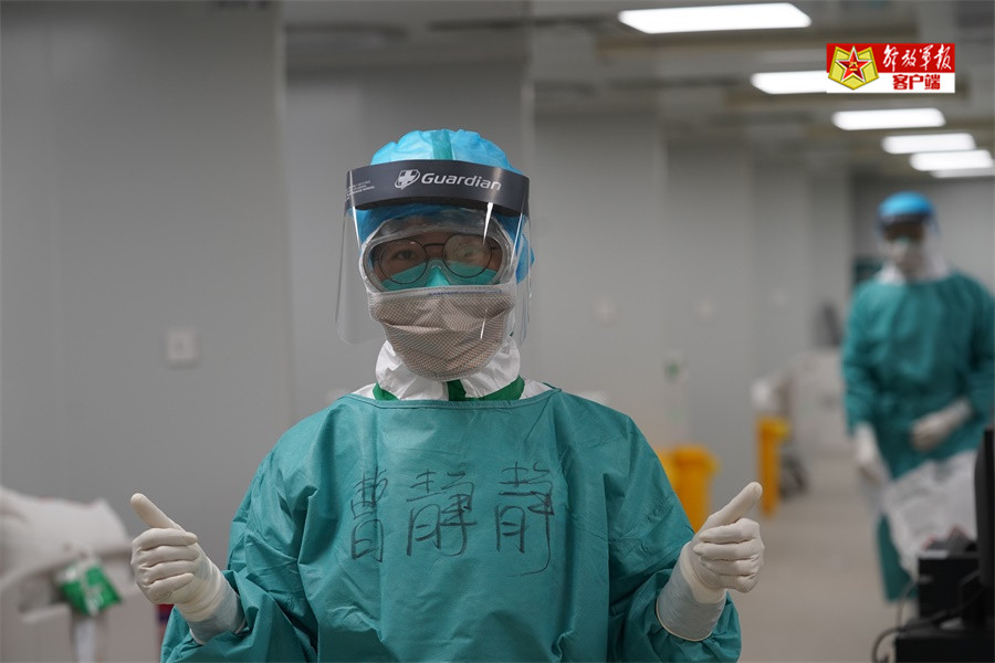 看到记者在拍照,已经工作了近四个小时的曹静静护士冲着记者乐观地说“加油”!