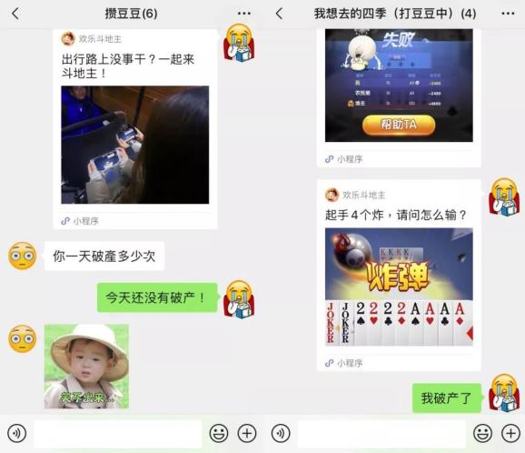 有个女生问了一句「接下来几天你们都干嘛?」我随口回说「我们可以打牌呀!」于是就去搜了下小程序,把「欢乐斗地主」丢进去群里,我们就这么开始打起牌来。