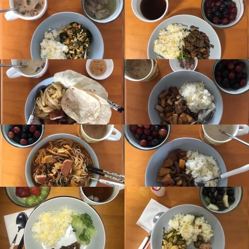 刚开始的时候,大家家里储备还比较齐全,湖南特有的腊鱼腊肉、酱板鸭、特色卤味等等。我们还会评比,谁桌上的东西最丰富,谁就是土豪。