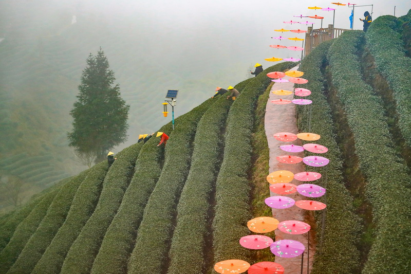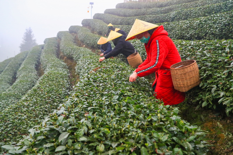 上午10点,直播活动正式开始。云雾缭绕的茶山上,茶农戴上草帽和口罩,背着竹篓,双手游走在茬茬新绿间,抢摘今春第一抹茶香。“采摘茶叶有哪些技巧?”“采摘芽茶一定不能用指甲掐,否则会破坏茶叶的品质。”……直播过程中,主播和茶人展开活泼而有趣的话题互动,让观众足不出户,在家就能体验“云采茶”的乐趣。