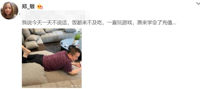 2月20日,知名相声演员岳云鹏老婆郑敏也在个人社交平台晒出老公的一张照片,并附文吐槽道:“我说今天一天不说话,饭都来不及吃,一直玩游戏,原来学会了充值...”