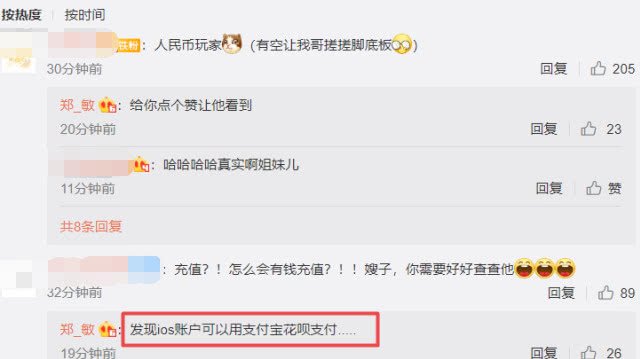 而从郑敏与网友的互动来看,背着老婆偷偷给游戏充值的他也是提前透支某宝的钱,真是个小机灵鬼儿!