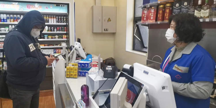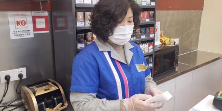 “欢迎光临!”直到早上九点半,便利店才迎来了第一位客人。 一位身穿卫衣的男士走到了便利店门前,高久红条件反射地从嘴里喊出欢迎词。同时,她轻抬下巴,向门口站岗执勤的店员小谭示意——顾客进店前要先测体温。你好,麻烦先帮您量下体温。”这个动作和这句台词,从疫情防控开始,也成了小谭和高久红的条件反射。 量好体温后,男顾客径直走到矿泉水区域,麻利地提出一桶3升的矿泉水,然后结账离开,过程不到2分钟。 高久红说,自从疫情后,这样的顾客多了很多——目标明确,没有废话,买完就走,尽量不做停留,