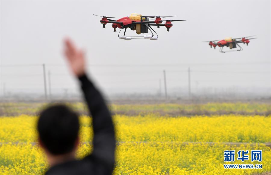 2月28日,在江西省南昌市南昌县蒋巷镇,无人机在对油菜田进行植保作业。 近日,地处鄱阳湖之滨的江西省南昌市南昌县蒋巷镇春耕工作全面启动,当地合作社组织农技人员和农户深入田间地头,利用拖拉机、无人机等设备开展春耕翻地作业和油菜田植保作业,春耕春管有序进行。 新华社记者 彭昭之 摄