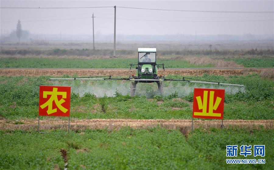 2月28日,在江西省南昌市南昌县蒋巷镇,当地农民驾驶拖拉机对油菜田进行植保作业。 近日,地处鄱阳湖之滨的江西省南昌市南昌县蒋巷镇春耕工作全面启动,当地合作社组织农技人员和农户深入田间地头,利用拖拉机、无人机等设备开展春耕翻地作业和油菜田植保作业,春耕春管有序进行。 新华社记者 彭昭之 摄
