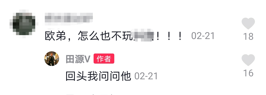 田源有时也会回复网友的评论,与网友互动。