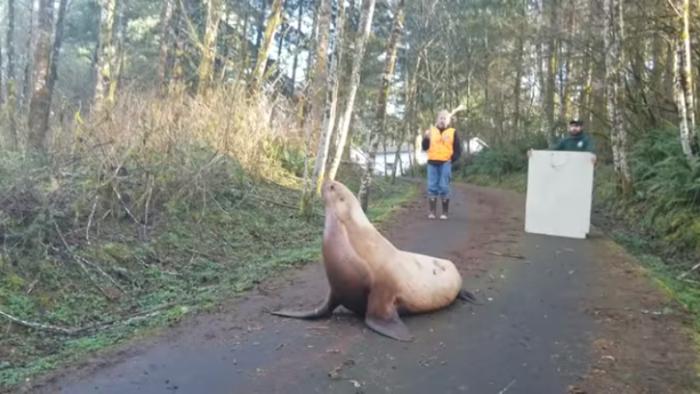不过,海狮却一直往内陆挺进,有时还被看到坐在路边,最后赖在一位居民的车道不走。华盛顿州和俄勒冈州野保部门、当地警力和慈善社团动员,联手圈捕海狮、确定它健康无虞后,才将它安全放回哥伦比亚河(Columbia River)。