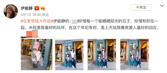 3月1日下午,女星伊能静在社交平台上传了4张自己和女儿米粒一起出门逛街的照片,并配文“珍惜每一个能晒晒阳光的日子,珍惜和你在一起。米粒是我最好的玩伴,在这个年纪有你,是上天给我善良爱人最好的回应。”