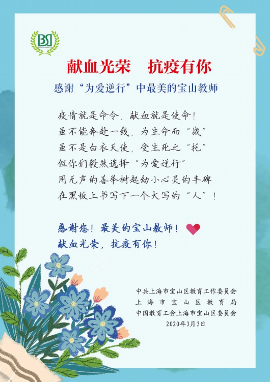 灾难无情,人间有爱。平凡的宝山教育人身体力行,献血救人,为生命加油,为生命接力,为生命守护!感谢你们,最美的宝山教师!