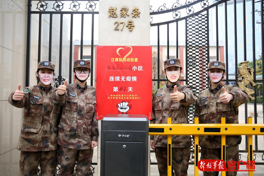 活跃在干休所疫情防控工作一线的医护人员,大部分是“90后”。胡泉就是她们中最活泼的那一个,平常的工作中也数她的“鬼点子”最多。缺少专业防疫人员是干休所目前防疫工作最大的矛盾,像孙海丽、顾韵姿这样的保健医生,在这个关键时刻就顶到了一线,然而日复一日高强度的工作,让这些姑娘们疲惫不堪,虽然戴着口罩,我们也能感受到她们的疲惫。胡泉这个时候就发明了“微笑脸”,把每名医护姑娘的照片都做成了口罩上的微笑脸,她说“我们真的很累,但我们医护的精神不能垮,所以我要在三八节这天把微笑带给姐妹们!”疲惫的黑眼圈和口罩上这张“微笑脸”让人动容,微笑天使胡泉不仅温暖了与她并肩战斗的战友姐妹,更温暖了所有官兵的心。