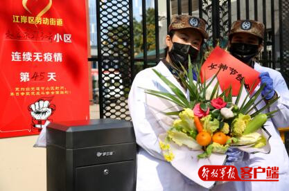 “你们像儿女们一样亲,姑娘们真是太好了。这‘鲜花’真是太美了……。”85岁的陈岩秋阿姨动情说道。而她对面这位“鲜花天使”,就是所里的医师顾韵姿,她是一名有着数年临床工作经验的职业医师,她深知疫情带给老人们的,除了身体健康的威胁,更多的是心理上的恐慌和不安。“三八国际妇女节”这天,买不到鲜花,顾韵姿就用蔬菜做了一批“花束”,专门送给干休所的阿姨们。顾韵姿说:“本来每年三八节我们都要给阿姨们送花的,今年情况特殊,我就用这些蔬菜做个花束,祝阿姨们节日快乐的同时,更想抚平她们心中的焦虑和不安。”