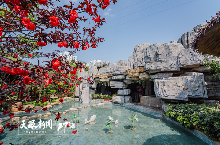 枫叶谷温泉将温泉疗养与园林景观完美结合,沿路进入室外园林温泉,可感受到一步一景的美感。温泉泡池有露天池40个,室内池8个,分为鱼疗池、漩涡池、溪泉池、气泡池、按摩池、枫叶池等,满足不同游客的康养需求。