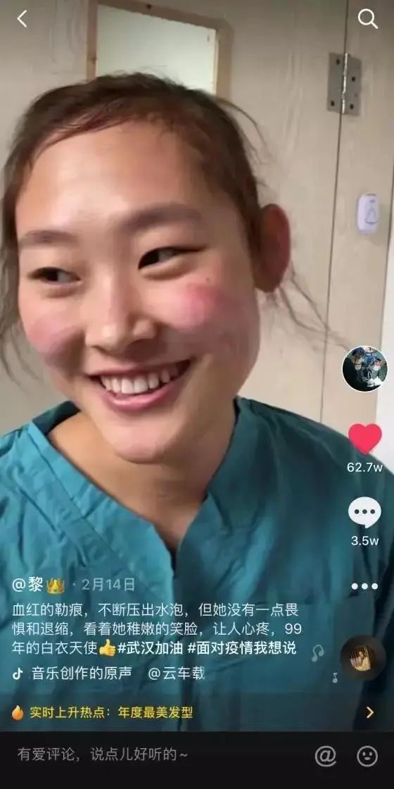 “摘下口罩,她们的笑容好治愈!今天是她们的节日,为了最美的她们点赞祝福,节日快乐,平安归来!”建德市第二人民医院护士吴诗卉登上了人民日报抖音账号三八节特辑封面。截至12日11点多,该视频获得了59万网友点赞。