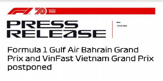 为此,F1不得不调整其他赛程: 巴林站、首次举办F1赛事的越南站、原定于4月19日举行的中国大奖赛,均推迟举行,具体时间尚未确定。