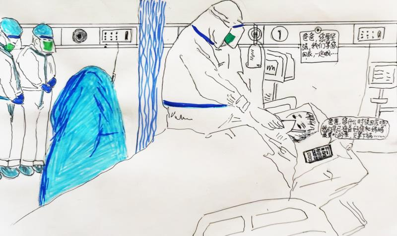 回想起在武昌医院工作的难忘日子,喜欢画画的聂姜连夜画出了和同事们一起经历的那些惊险抢救和生死离别的故事。