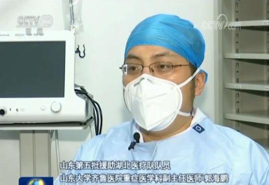 山东第五批援助湖北医疗队队员、山东大学齐鲁医院重症医学科副主任医师 郭海鹏:  看到了危重病人已经形成了一种类似于条件反射一样,看到了就想冲上去,就那种冲动,不抛弃、不放弃。  郭海鹏是土生土长的山东人,攻读硕士、博士学位期间,就读于武汉大学,疫情发生后,郭海鹏毫不犹豫地报名参加医疗队。而其实他刚刚结束在美国哈佛大学三年的博士后培训,回国还不到三个月。