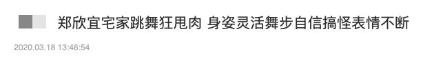 3月18日,网上曝光了一段有关32岁郑欣宜的最新视频,许久未露面的郑欣宜也终于憋不住宅家跳起了热舞。
