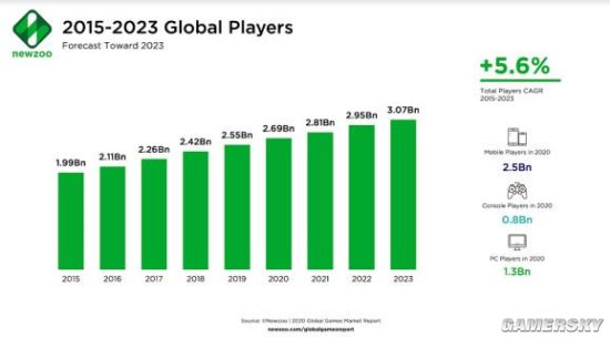 市场调研公司Newzoo:2023年全球玩家将达30亿 近四成人类玩游戏