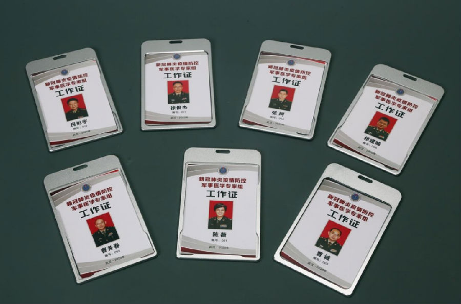 军事科学院新冠肺炎疫情防控军事医学专家组党支部陈薇院士等7名支委的工作证(军博馆藏)