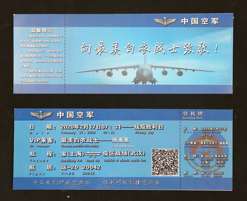 海军军医大学援鄂医疗队队员乘坐“运-20” 赴武汉的纪念登机牌(军博馆藏)