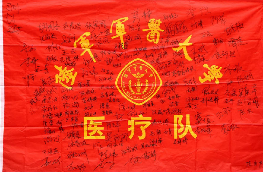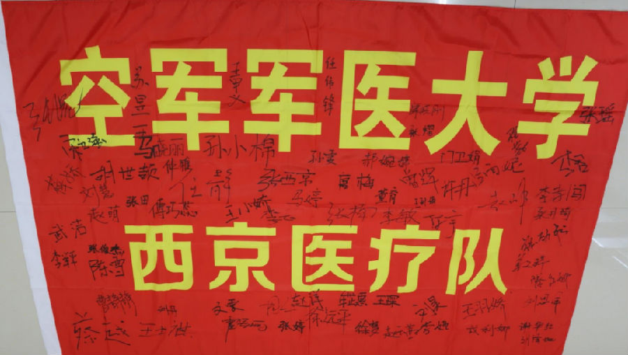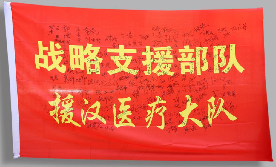 还有火箭军援鄂医疗队撤离前夕创作并集体签名的防护服。
