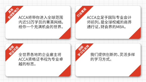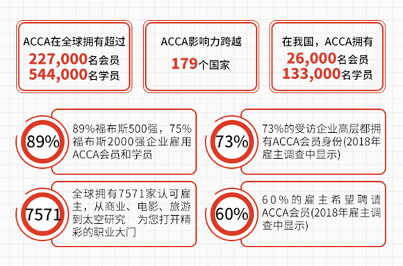 ACCA专业资格被认为是“国际财会界的通行证”,ACCA具备全球影响力,选择ACCA,意味着你加入了一个全球关系网路,利用全球影响力,提供更多发展机会,也为你的未来创造无限可能。