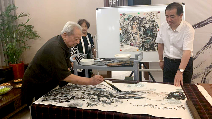 88岁画家刘汉现场泼墨,国画《出浴》拍卖所得将用于扶贫公益