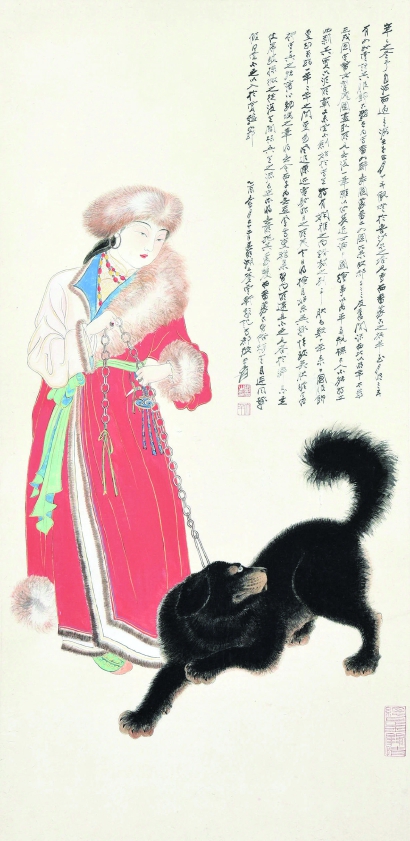 张大千《番女掣厖图》在此次特展上亮相。 (主办方供图)