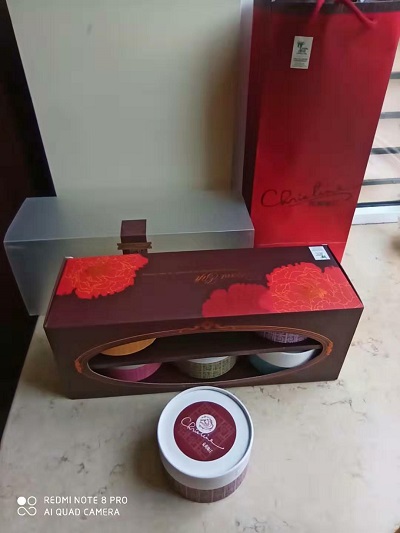 记者看到,这个克莉丝汀月饼是独立小包装的,还未拆开。独立小包装上有克莉丝汀“CHRISTINE”的标志,生产日期是2010年8月30日。透过塑料包装,记者看到,里面是一个方形的“胚芽白莲”月饼。从背面看,塑料小包装内还有一个标注“不可食用”的脱酸素剂。“月饼的包装很好,每个独立小包装的月饼都装在一个圆形的纸盒中,再装入一个大纸盒。”周先生介绍,据大盒子上的说明,该月饼的保质期是45天。