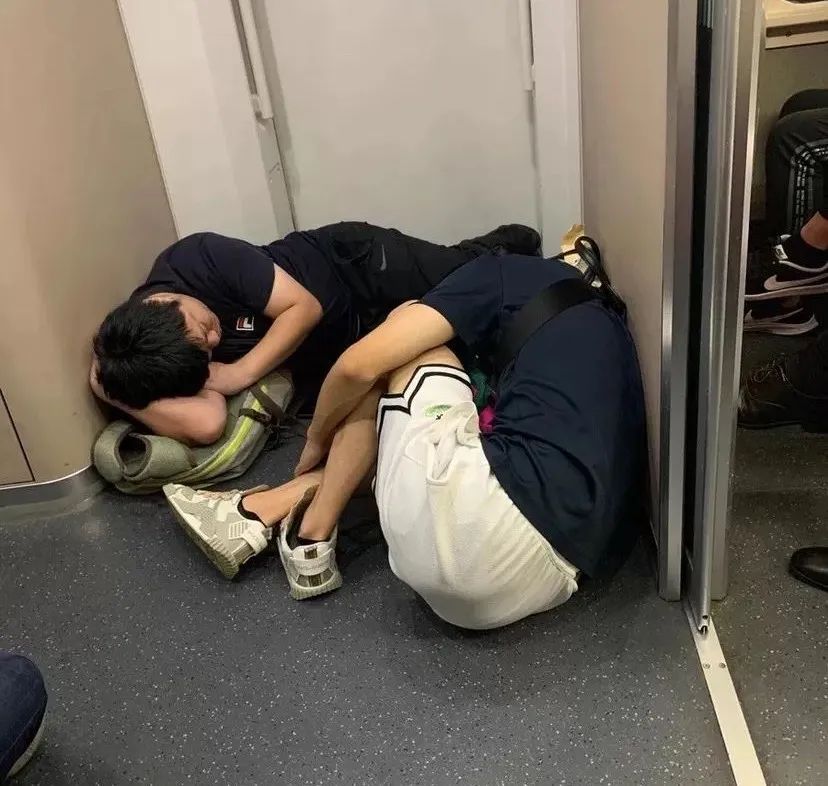 因为高铁过道上的这张照片,这俩人火了……背后故事令人动容