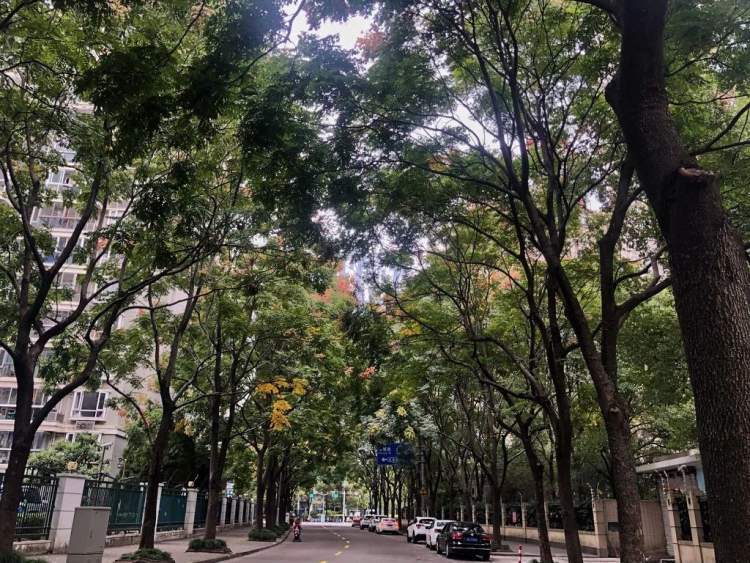碧波路的林荫道位于松涛路和祖冲之路之间,靠近张江碧波公园,可在从容漫步中观赏秋景。