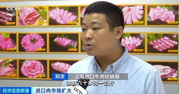 上海进口牛肉经销商 刘文:老百姓用的比较多的进口牛腩,往年在这个时候我们终端销售达到六十多元一公斤,就是三十多元一斤,而目前一公斤只有四十元左右,就是一斤才二十多元,比现在猪肉价还要便宜。