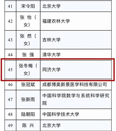 祝贺!同济大学张冬梅教授荣获中国青年科技奖