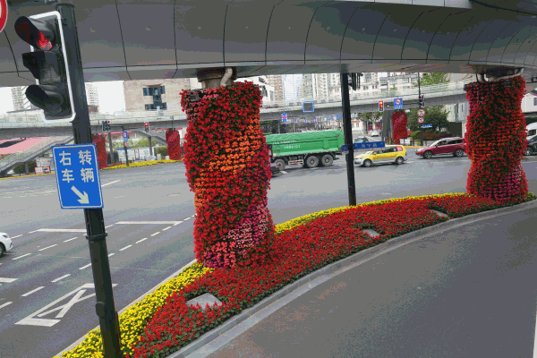 进博会前夕,虹口的街头再次被点亮,你发现这些美景了吗,多彩绚丽的绿化街景,花卉布置、行道树养护,公共绿地养护等多方面,有了更新和调整。